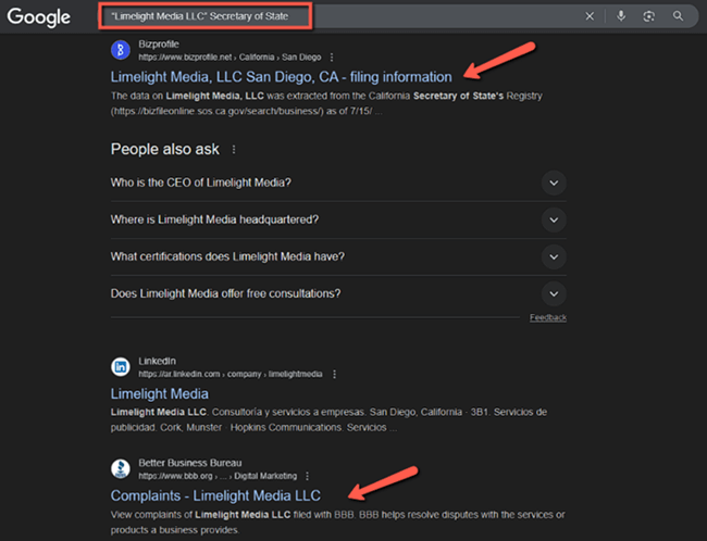 Google Search is a direct approach for verifying the identity and registration of a business. If you are a job seeker or a freelancer, you can use it to find the official site, business listings, and the registered address. The issue with Limelight Media is that it is actually registered as a real company, although that doesn’t take away from the fact that it functions like a pyramid scheme. Anyway, let us move on to how to use Google to find some information on Limelight Media.